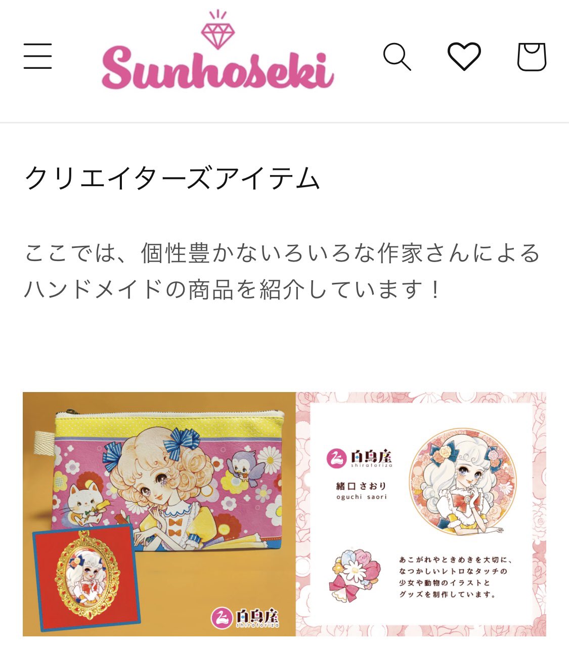 サン宝石様 ウェブショップ サン宝石様ウェブショップにて委託販売が開始しました! みなさまご存知のかわいい商品がたくさんなサン宝石様のウェブショップにて、 白鳥座グッズを取り扱っていただけることになりました。 <クリエイターズアイテム>のカテゴリーからご覧いただけます。 ぜひご利用ください! sunho.storeSUNHOSEKI『サンホ』こと『サン宝石』は、全国の女子小学生&中学生に大人気!雑貨・アクセサリー・デコパーツ・文房具・ファッションの激安通販『サン宝石』公式サイト!